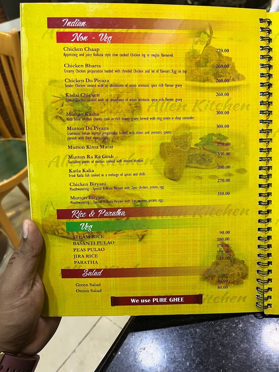 “ This outlet is a branch to the famous Allen Kitchen from North Kolkata. It's a small yet cosy place for dining in and they offer a variety of food options at reasonable prices. The waiter and the manager explained us through the menu and the prestigious glory that Allen Kitchen have created for themselves. Tried the special fish fry, parathas and chilli chicken. I was amazed with the portion of fish fry served. It was delicious and every bite was having fluffy vetki fish in it. The parathas were good and the best part was they were made of wheat flour instead of maida. They were perfectly cooked and complimented the chilli chicken perfectly. The portions of chicken in the dish was of decent size and we loved the taste and texture. ”